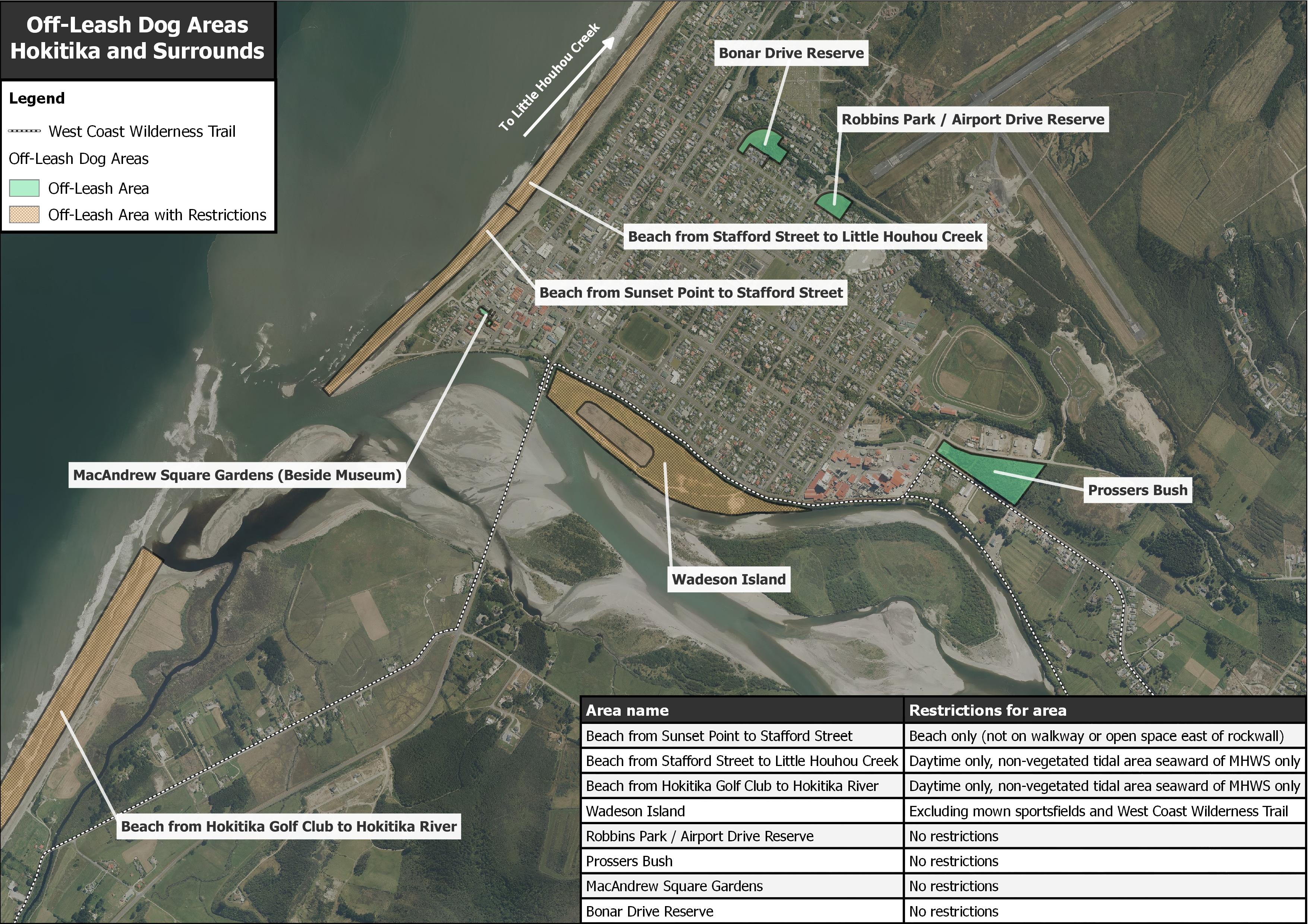 - Dogs must be on a leash within the Hokitika Central Business District.