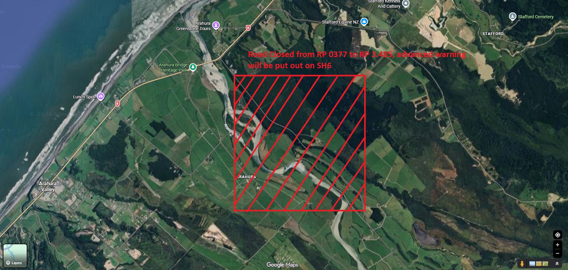 A section of the Old Christchurch Road shown in the photo will be closed on Friday 20 February 2026, from 8am to approximately 10.20am to recover a tractor from the roadside. Traffic management staff will be in place. If you have any questions, please contact the Westroads office by phoning 03 7568044.