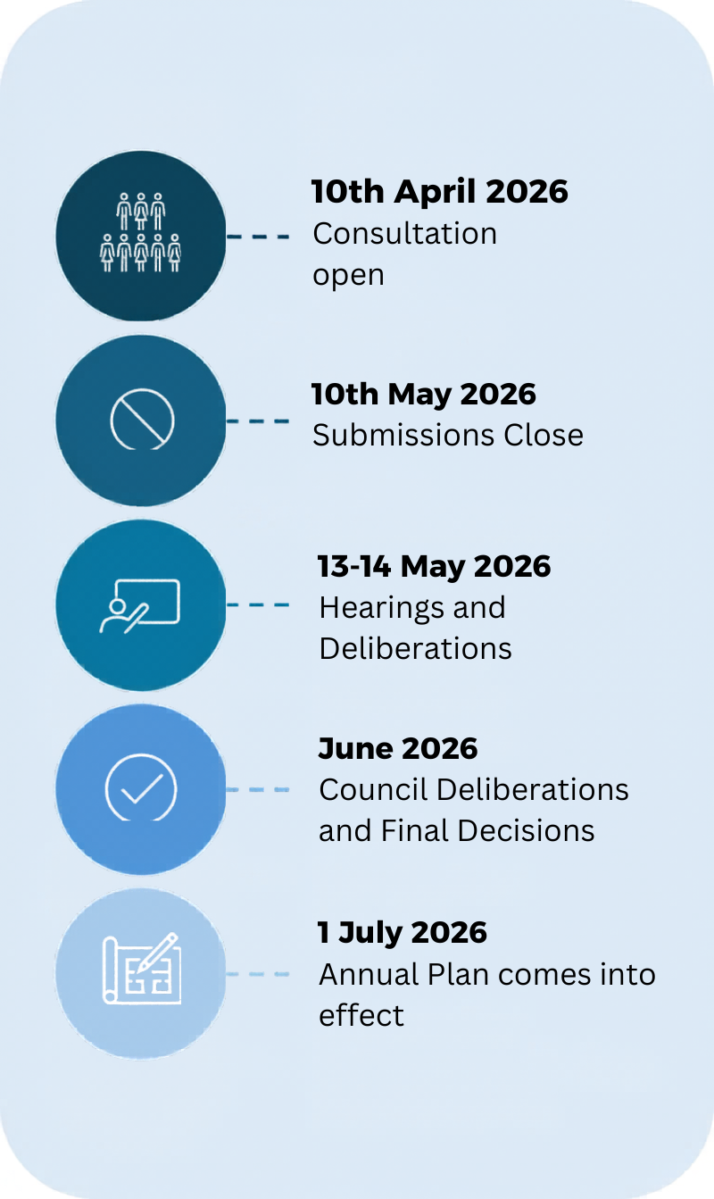 The Annual Plan allows Council to make smaller adjustments in response to current conditions, but not major changes to overall direction. Community feedback is still important, as it helps shape these decisions.